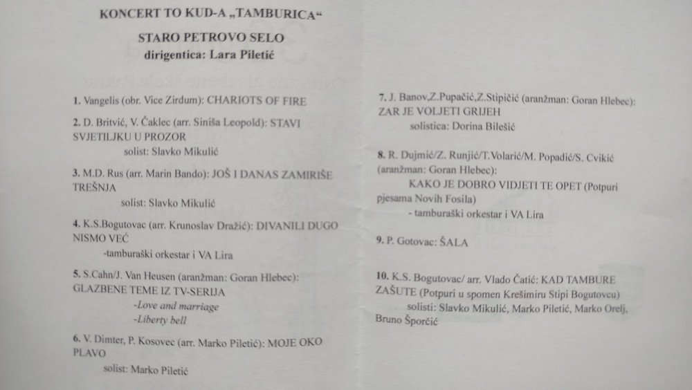 Potom je u potpuno ispunjenoj Gradskoj vijećnici kurije Janković održan tamburaški orkestar KUD-a "Tamburica" iz Starog Petrovog Sela, pod ravnanjem Lare Piletić, nekadašnje učenice OGŠ Pakrac. Glazbenici su izveli deset skladbi koje su dočekane gromoglasnim pljeskom i pozivom na bis. Dogovoren je nastavak suradnje škole i KUD-a, uz veliko odobravanje publike čija je jedina zamjerka bila što je koncert potrajao samo sat vremena.