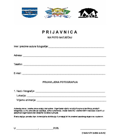 3. Uz svaku fotografiju priložite popunjenu prijavnicu (ime i prezime autora, kontakt - podaci, lokacija i datum snimanja ako su poznati, kratki opis fotografije).