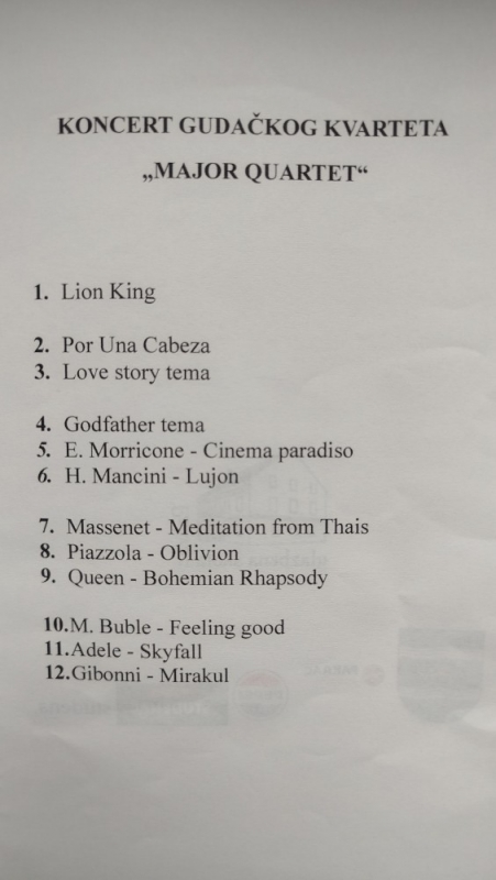 U 60-minutnom programu proveli su publiku kroz klasičnu, filmsku i popularnu glazbu, a publika nije krila oduševljenje izvedbom te su pozvani i na bis.