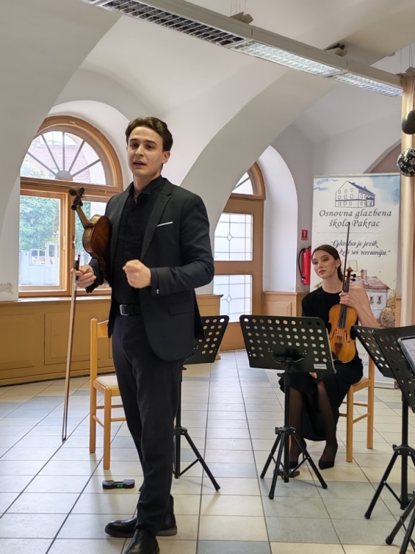 Voditelj kvarteta i prva violina, Matej Mihaljević, predstavio je svoje kolege, Jelenu Knezović na drugoj violini, Doru Šimunić na violi i Tonka Markovića na violončelu. Zahvalio se na prilici da dođu u naš grad i sviraju na ovom posebnom obilježavanju, a ravnateljica OGŠ im je pritom uručila prigodne poklone i zahvalila se što su večer obogatili svojom izvedbom.