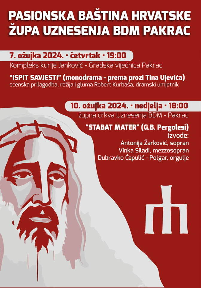Povodom Dana Grada Pakraca, u organizaciji pakračke župne crkve Uznesenja BDM u kompleksu kurije Janković, u četvrtak 7. ožujka bit će izvedena monodrama „Ispit savjesti“ prema prozi Tina Ujevića.