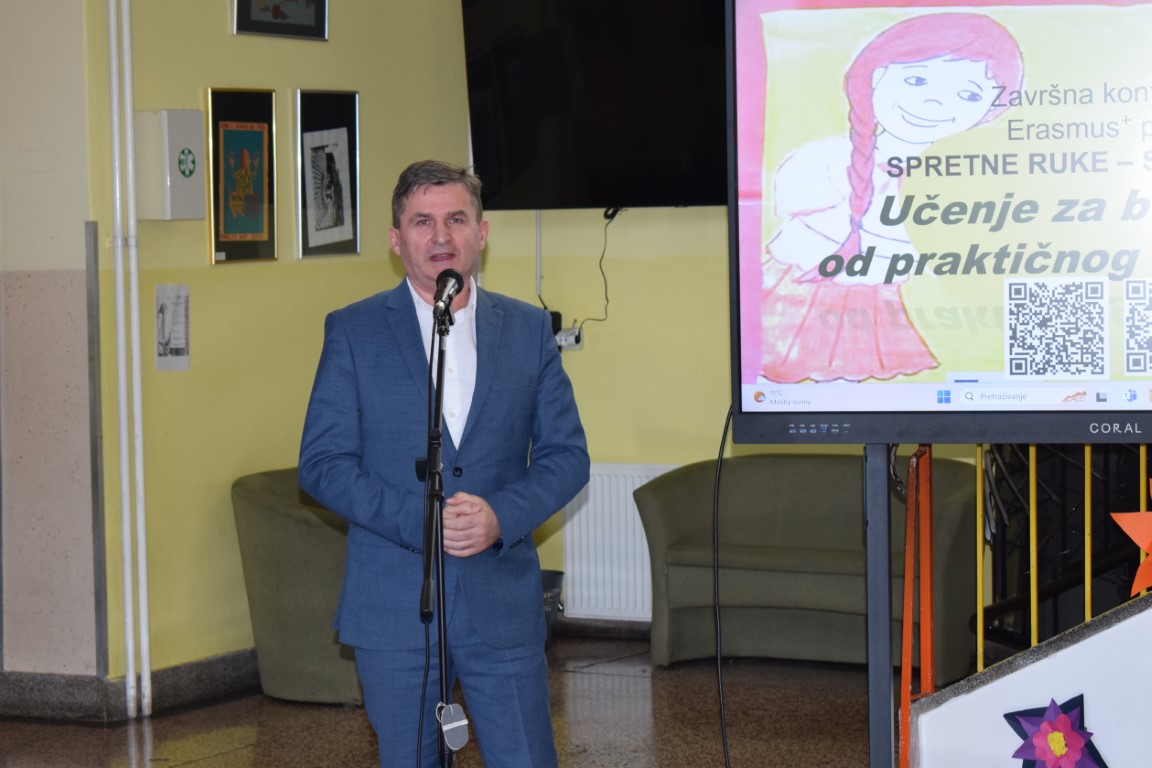 Učenje za budućnost: od praktičnog k digitalnom naziv je završne konferencije međunarodnog Erasmus+ projekta „Spretne ruke – sretna djeca“ koja je održana danas u Osnovnoj školi braće Radića. Radi se o projektu kojeg je naša škola provodila od prosinca 2021. godine zajedno sa školama partnerima iz Italije, Grčke, Rumunjske, Bugarske i Poljske, a obuhvaćao je provođenje niza edukativnih i zabavnih aktivnosti s ciljem poticanje djece na aktivnosti koje povećavaju vještinu rada rukama te kretanje u prirodi.