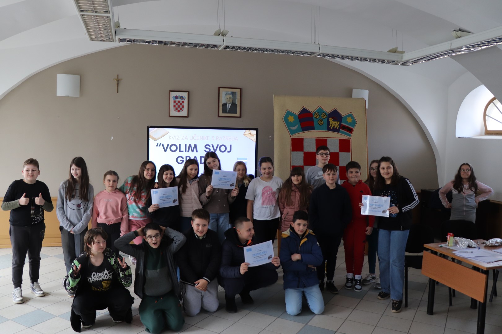 Odabranih petero predstavnika branilo je boje svog razreda, a osim što su svi razredi nagrađeni zahvalnicama te svi ostali učenici pizzama, sendvičima i sokovima, pobjednička ekipa je osvojila i izlet u Zagreb, a na sljedećoj poveznici možete pogledati djelić atmosfere pri proglašenju pobjednika.