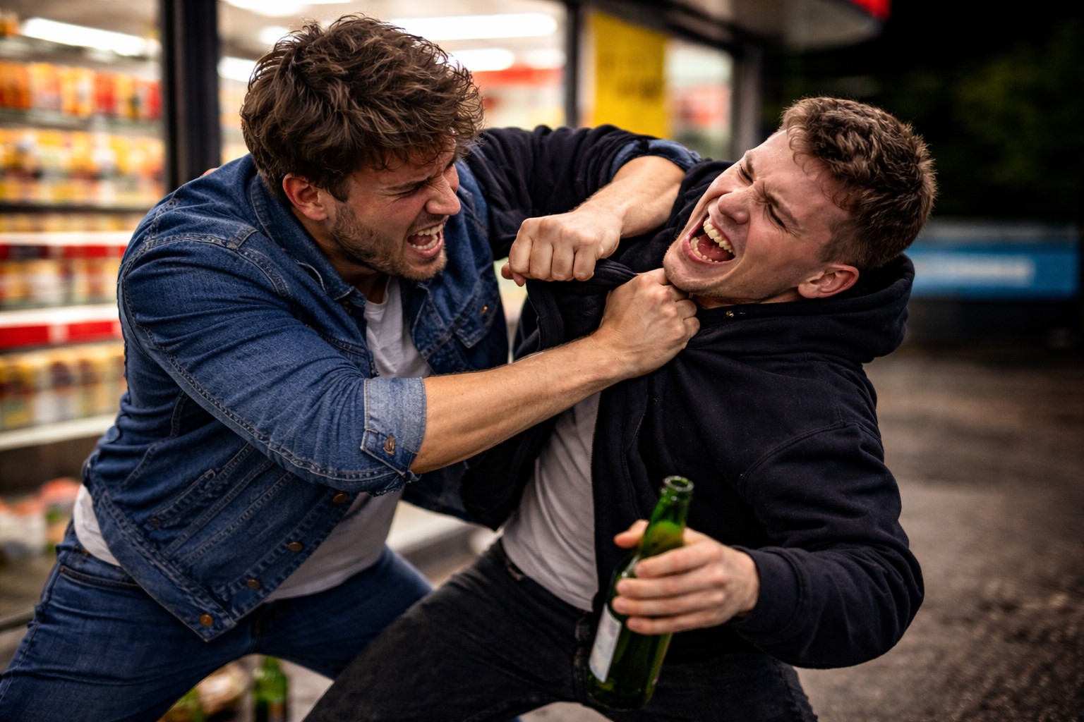 Jučerašnje popodne, a vjerojatno i jutarnje sate, dvojica mladića od 22 i 25 godina odlučili su provesti ispred trgovine u pakračkoj ulici Krndija što se naposljetku ispostavio kao prostor za borilački oktagon.
